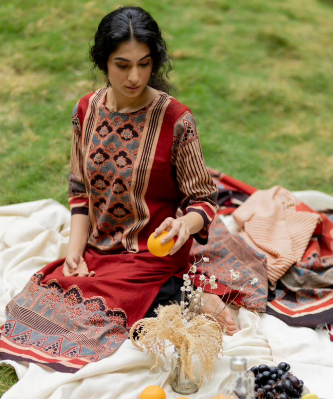 Arwa brings out the synergy of hand block prints and immaculate tailoring with designs that suits the classics and contemporary. Inspired by Suzanis, Arwa is about smart and functional essentials that spell 'Indian Contemporary’.